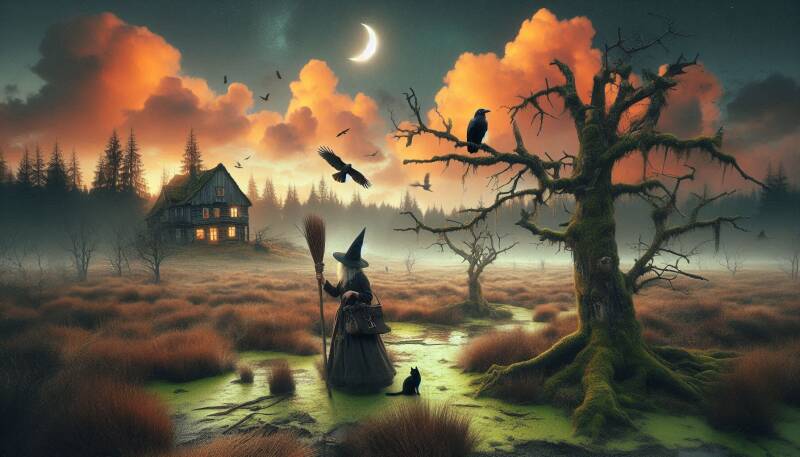 Doch da kam sie ihm schon entgegen, und während er tief den Hut zog, öffnete die hagere, lange Gestalt den hässlichen zahnlosen Mund und fragte freundlich-grinsend, wie es ihm gehe? Gar gut, meinte Schluepp höflich, gar gut, Madame Laboix, wenn ich nur wenigstens den Berg gegen den Gänsbrunnen hinter mir hätte, dass ich noch zeitig nach Hause käme! Das kann schnell geschehen, Meister, erwiderte die Hexe und klopfte ihm freundlich auf die Schultern; da zuckte es dem dicken Metzger in allen Gliedern, er fiel zu Boden, und wie ein Kegel purzelt er die ganze Weide hinab bis zum Fusse des Berges. Fluchend stand er endlich wieder auf, reinigte sich von dem Dreck und befühlte seine zerquetschten Glieder. Da hörte er vom Gipfel einer nahen Tanne ein gellendes Gelächter. Eine Elster wiegte sich auf einem Zweig. Schweigend eilte er weiter, aber die Hexe erreichte ihn wieder, und erst nachdem ihn ein Platzregen bis auf die Haut durchnässt und ein Hagelschauer ihm tüchtig den Kopf zerschlagen hatte, kam er ganz missmutig im Gänsbrunnen an, wo er über Nacht bleiben und sich erholen musste.